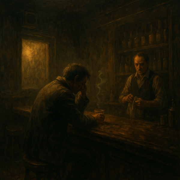 Un bar oscuro, gastado y lleno de humo. Un refugio donde el dolor se sirve en vasos de cristal y la música nunca cambia. Aquí se regresa cuando la esperanza se oxida y el abandono se convierte en compañía.
